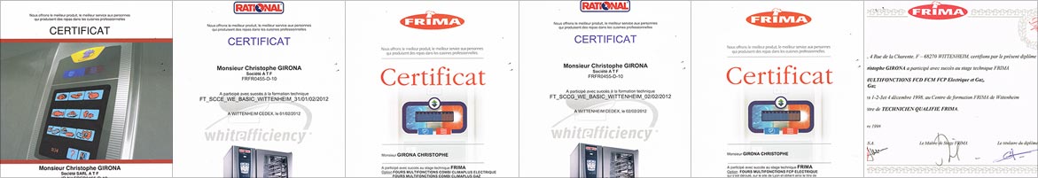 Nous sommes certifiés pour la pose, la mise en service, la maintenance et le dépannage de tous les fours de la gamme FRIMA RATIONAL.