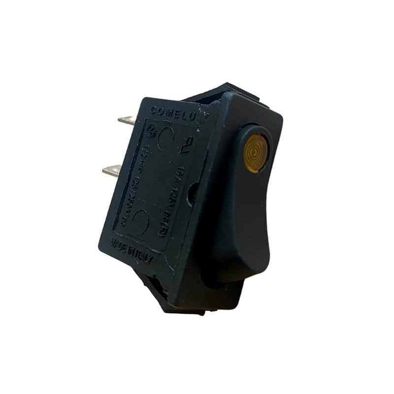 Interrupteur unipolaire noir lumineux jaune. C'est une pièce détachée pour cuisines professionnelles, bars, restaurants, collectivités vendue par ATF34 LUNEL, HERAULT, GARD, OCCITANIE, FRANCE.